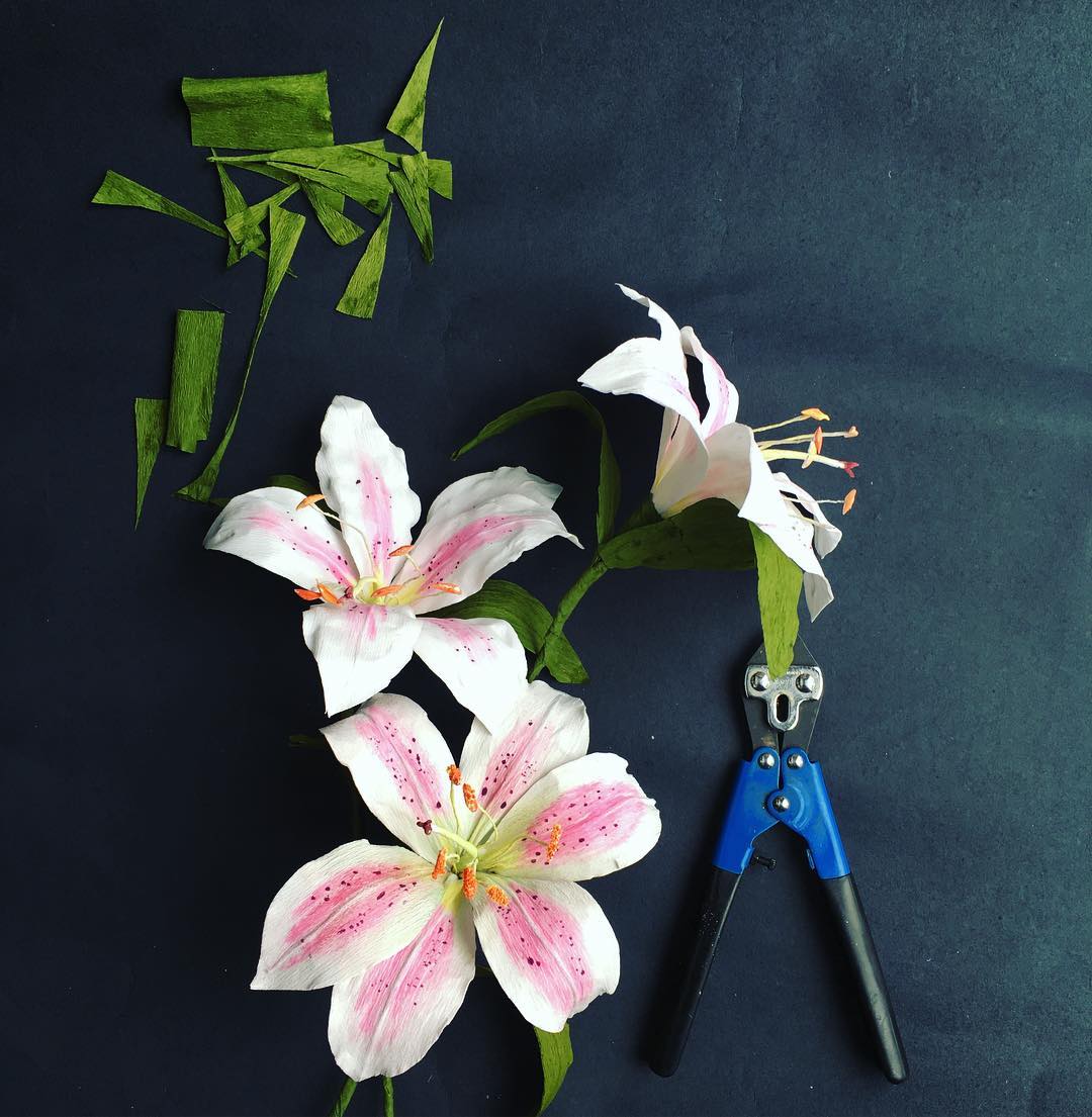 A great glue gun is essential! I started using the mini glue gun from Michaels because it could achieve fine work.Well,then I got the first large paper flower wall and I went through 3 of them,burnt down 2 and had burnt finger and sore fingers for days! The large is great for large work but a stand is essential.