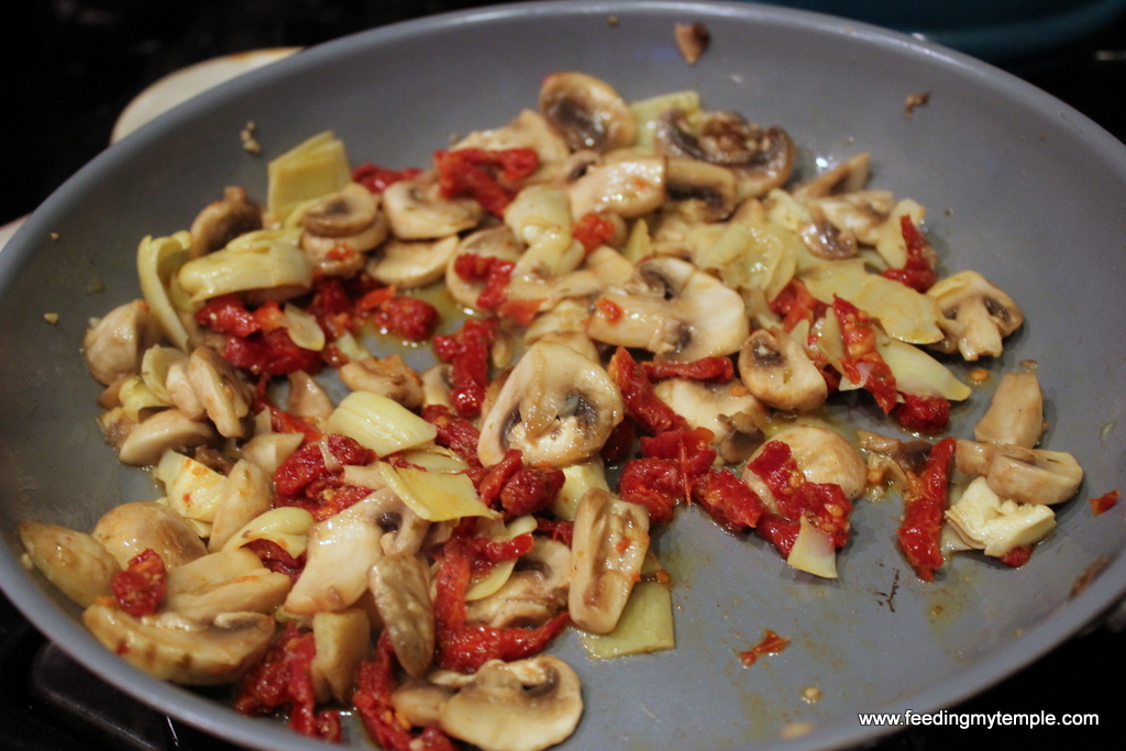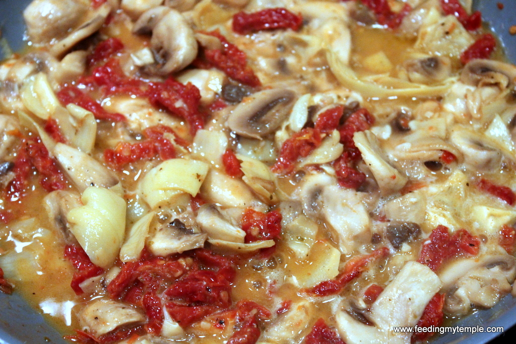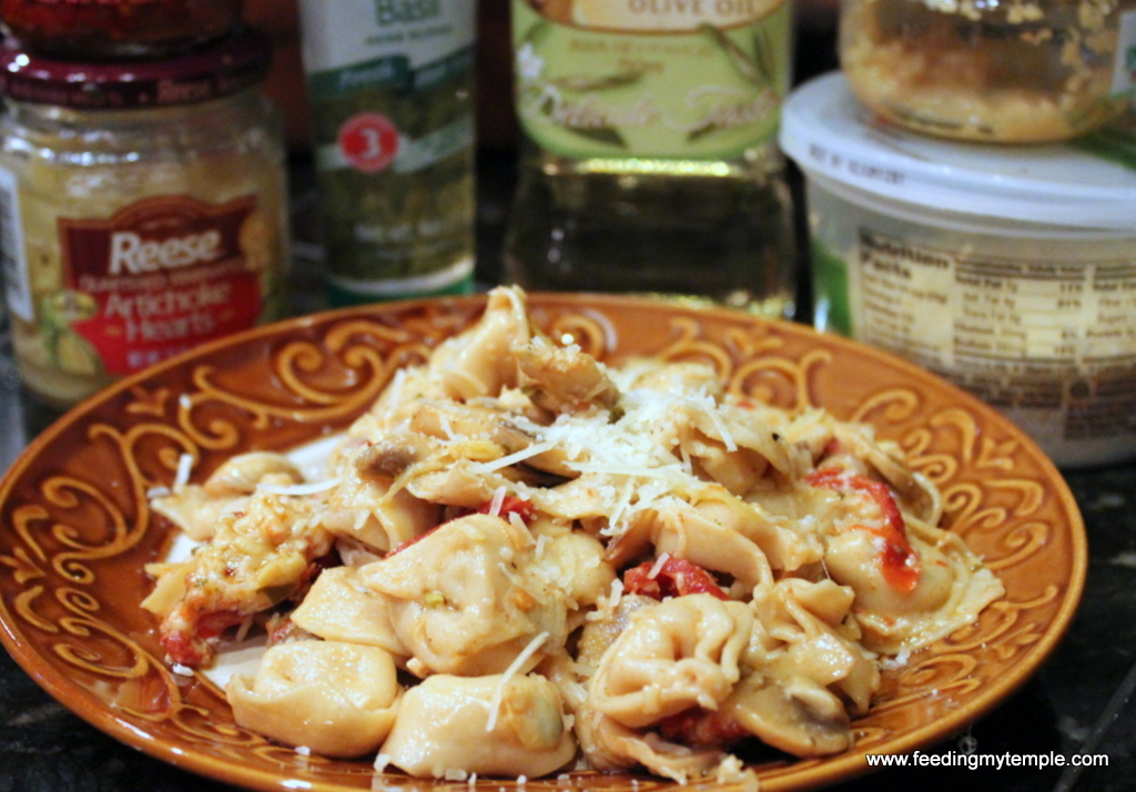 This dish combines almost all of my favorite foods. There is just something about the paring of artichokes and sun dried tomatoes that makes me really happy. If you didn't notice, this is a vegetarian dish, but you could just as easily pick up a different variety of tortellini. I have seen a ton of flavors lately, including Italian sausage or chicken filling.