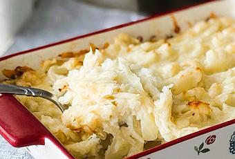 It's very easy. You basically make mashed potatoes without the milk and fold it together with cabbage and onion, pile it into a dish, slather the top with some good cheese and bake. Simple.