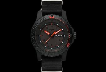 The Red Combat watch from Traser H3 boast with innovative trigalight illumination technology. It’s the ability to manufacture self-illuminating light and not depended on a battery or sunlight charge. Easy to read in the darkest of hours, the watch is a robust double case construction with calendar and day date as well. Water resist up to 20 ATM. Two recommended straps are the nato and rubber. In the event of being buried alive, you would at least have the time.
