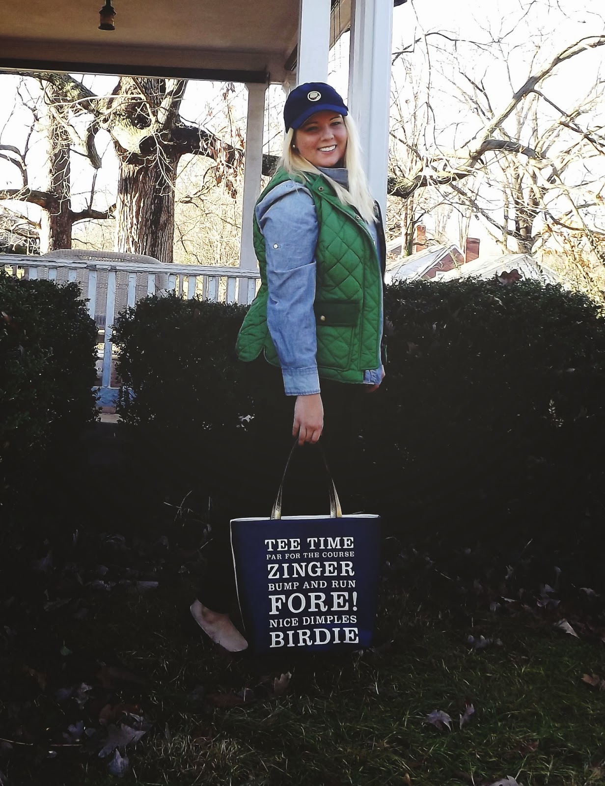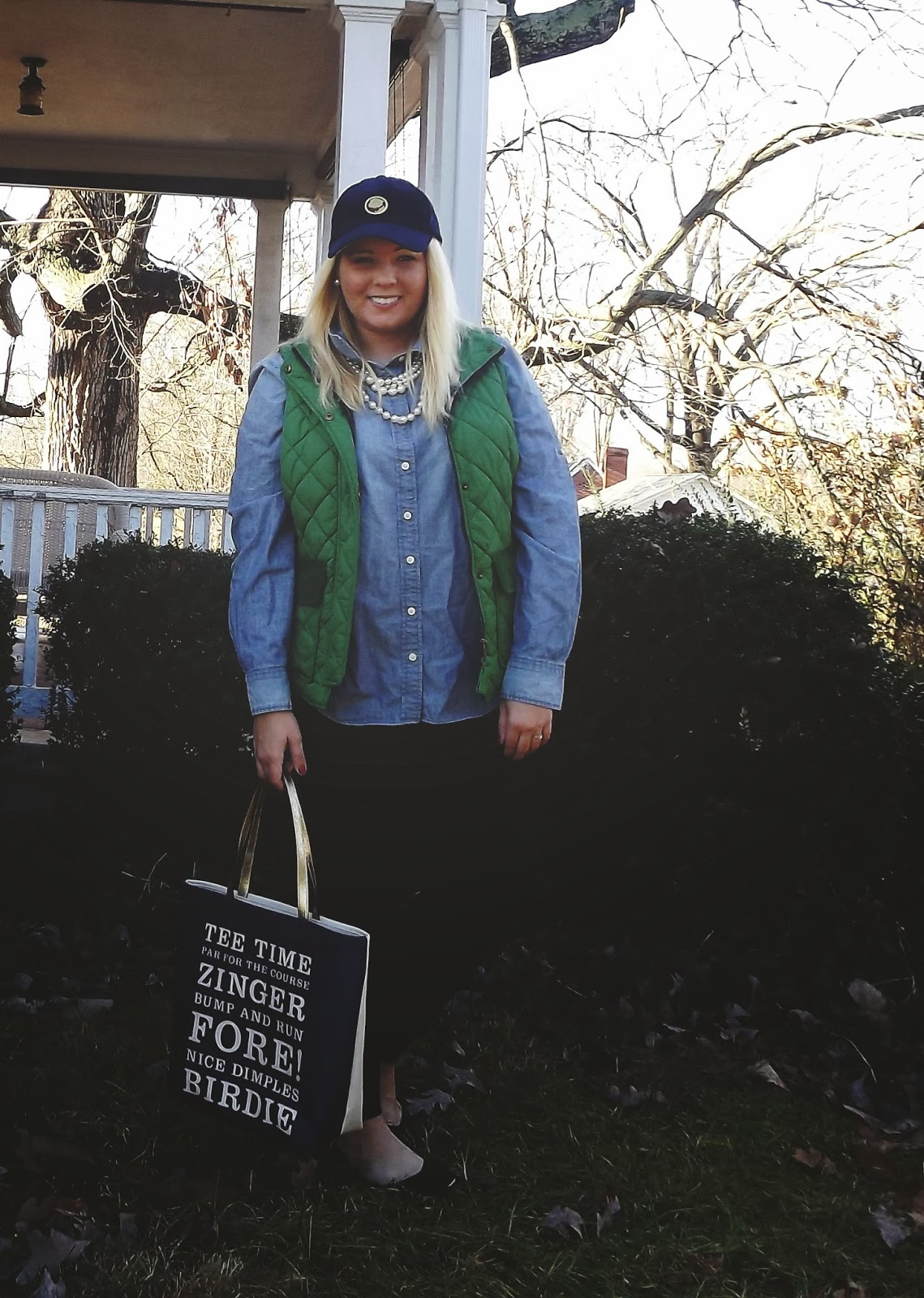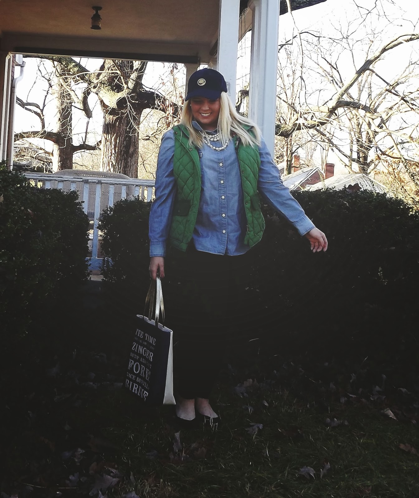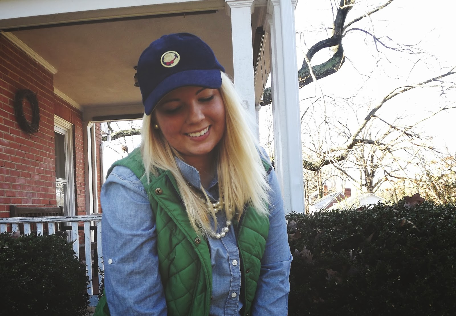 Outfit: Vest- Joules, Chambray Button Up- J. Crew, Leggings- J.Crew, Flats- Target, Hat- Southern Proper, Purse- Kate Spade, Pearls- J. Crew New Year's Day, the day where America is either fighting a "head ache" or traveling. Me? I'm traveling. James and I are heading down South, back to North Carolina to be with the other part of the family (soon to be my family too!) I hate traveling and being uncomfortable so leggings are obviously the most appropriate choice for "pants." The vest keeps me comfortable in the car while providing some color to this otherwise dull ensemble and the hat...well, it keeps my hair in place believe it or not. And yes, I'm obsessed with baseball caps. I especially love the corduroy aspect of the hat. It's one of my new favorite things and I intend to wear corduroy up until mid spring if I can help it (go ahead...judge me all you want.)