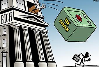Trickle-Down Political Cartoon is by Mike Konopacki in The Capital Times.