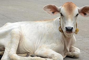 Yours truly on the streets of Thiruvallikkeni speaking to the beautiful calf !