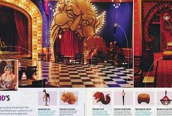 This week’s Entertainment Weekly has featured the set designs for Season 5′s True Blood’s Faery Club, which they call a “Pleasure Palace.” I interviewed Suzuki Ingerslev, True Blood’s Set Designer while at Comic Con and she spoke about the Faery Club and how it was the most difficult set to do for Season 5. You can read that interview with her by going here. Meanwhile, read what EW has to say about all the feary faces, house cat, Moroccan influence and the movable seats below.