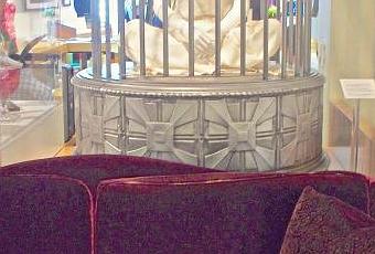 The couch from the Compton House, was part of the set design used on True Blood seasons 1-3, prior to it’s renovation when Bill became King and it is on display at the at the Paley Center for Media in Beverly Hills. The couch contains stains (look closely!) from the remains of the Vampire Queen of Louisiana, Sophie Anne Leclerq.
