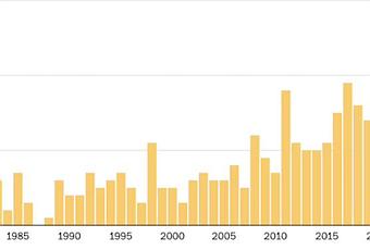 The chart above (from the National Oceanic and Atmospheric Administration) should frighten all Americans. It shows that the number of natural disasters causing at least a billion dollars on damage have been increasing in the United States since 1980. These disasters have increased in bot size and frequency.