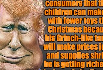 As Donald Trump is telling American consumers that their children can make do with fewer toys this Christmas because his Grinch-like tariffs will make prices jump and supplies shrink, he is getting richer by the hour. Quite literally.
