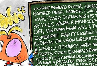 Trump Rewrites HistoryPolitical Cartoon is by Clay Jones at claytoonz.com.