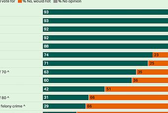 The chart above is from the Gallup Poll in a survey done between January 2nd and 22nd of a nationwide sample of 1,011 adults, with a 4 point margin of error. Note that only 29% say they would vote for someone charged with a felony crime, and only 23% say they would vote for someone convicted of a felony crime.