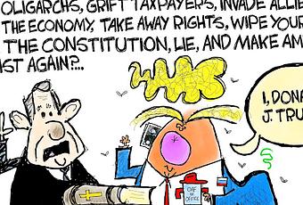 Trump's OathPolitical Cartoon is by Clay Jones at claytoonz.com.