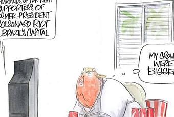 Trump's Thoughts On Brazil RiotsPolitical  Cartoon is by Ann Telnaes in The Washington Post.