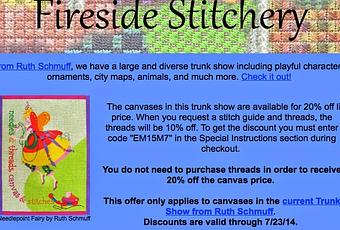 My trunk show is available this month at Fireside Stitchery and they are offering some great deals for you! The canvases are 20% off and if you order threads to go with a canvas, those will be 10% off-- great deal! To go directly to their trunk show page, click here.