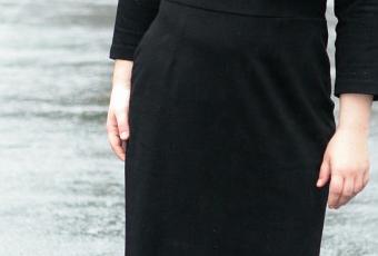 I can't believe this is the first time I have worn this fabulous dress on the blog. I have shared it on Instagram and worn it several times, but just not on here. I even wore it to speak on a panel of journalists because it looks so great, so sophisticated, and still so comfortable. Well this dress totally deserves a moment in the sun, even though it was photographed on a drizzly day. The dress is the "Belle" from Dobbin Clothing, and it's one piece from their amazing collection of well-crafted wardrobe workhorses. Dobbin Clothing specializes in clothing that works as hard as you do - flattering fits, primarily washable clothing, and designer quality. This dress is from ponte knit and has seaming that makes my body look phenomenal. This is a size 12 and it fits great. Right now this dress is on sale, Dobbin Clothing offers free shipping both ways, and right now if you use the code FIRSTTIMEVISITOR you get 20% off your entire order! Oh, did I mention that Dobbin Clothing is made in the USA right in New York's Garment District?