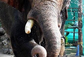 This majestic komban of Guruvayur enjoying its bath – did some artistic performance too !!
