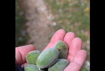 When I was walking the Lycian Way, a farmer gave me these fuzzy little fruits and I was not really sure what it was but I ate it (why not, eh?). Later I Googled and it was young almonds. You can eat the entire thing (the shell is not hard yet) except for the fuzzy skin, but the outer part is a little bitter, but the inner part, which will later be the nut that we are used to, tastes kind of like cucumber!