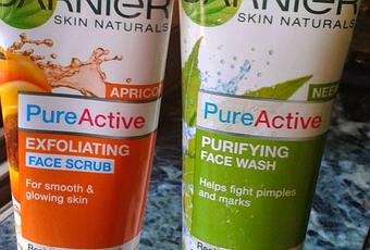 The face wash is pale green in color. It claims of neem extracts so that explains the reason why. It is neither too thick or runny and is gel based. The face wash lathers well and cleansed my oily skin of dirt and grime very well. My skin gets dirty very fast as our house faces the main road and there is a lot of pollution here. Touchwood I do not get acne frequently but lately my skin broke out with one or two pimples here and there. I would recommend this face wash to everyone especially in syummers and otherwise to those who have acne prone oily skin.Review of the Garnier Apricot Scrub:Price: Rs. 115/- for 100 g The scrub comes in a white opaque tube with a flip cap for easy application. Honestly I like transparent packaging as I know how much product is remaining. It is definitely travel friendly & you can carry it along with you in your handbag.