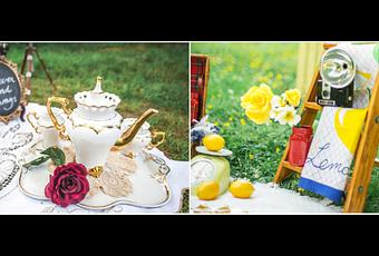 We wanted to do a 2 part picnic with contrasting themes; one is colorful and playful, and the other is more glamorous and pretty.