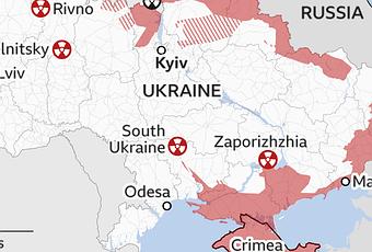 The plant, located around 550km (342 miles) south-east of the capital Kyiv, generates almost a quarter of all electricity in Ukraine. It lies on the river Dnieper, north-east of the city of Kherson which is said to have been occupied by Russian forces.