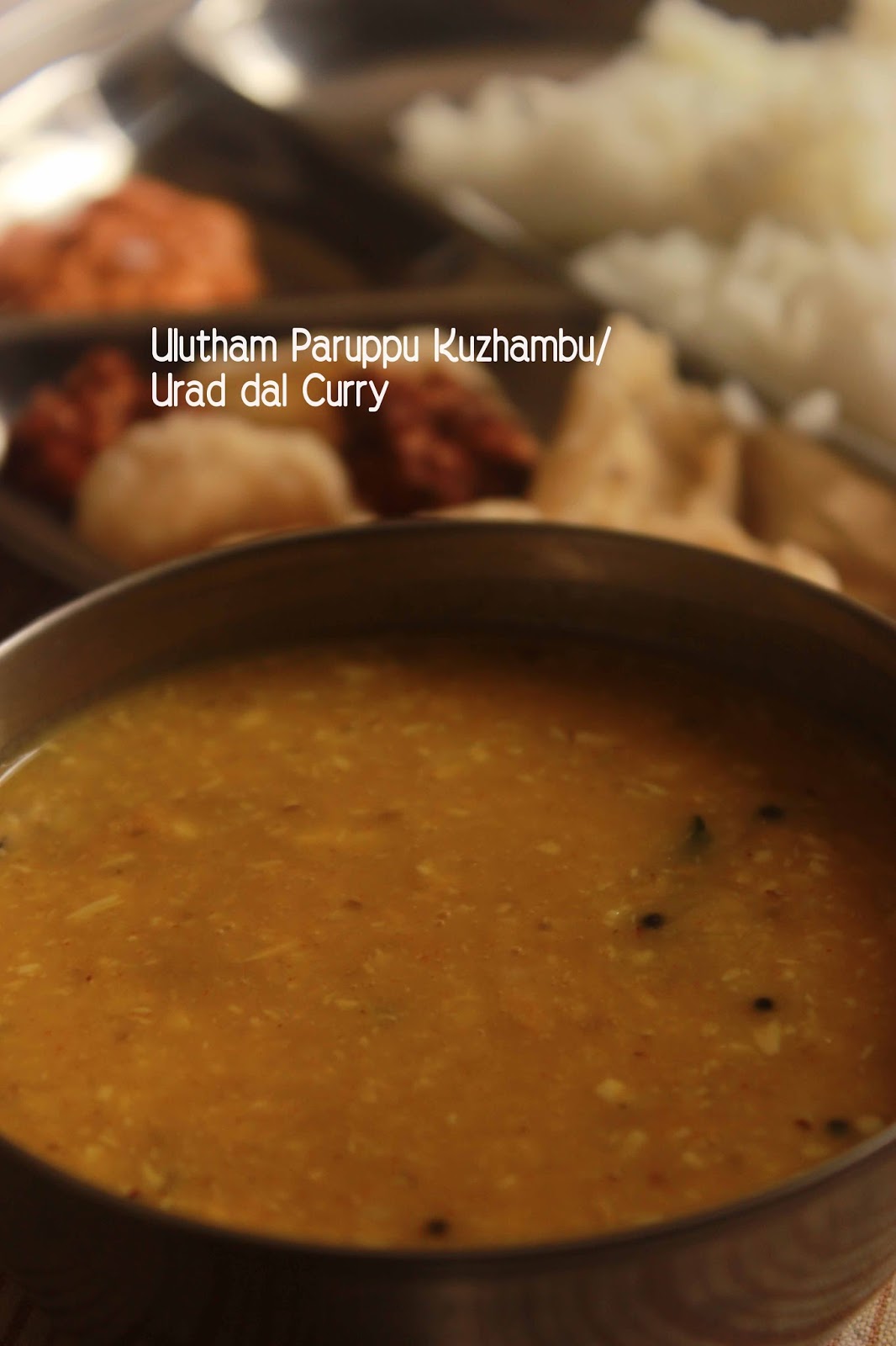 This recipe may sound new to many and it belongs to Tirunelveli (down south district of Tamil Nadu,India) cuisine. It is same as the dal recipe we make using toor dal or moong dal. Urad dal has abundant nutrients in it; calcium, iron, folic acid, magnesium, potassium, etc,. It is highly recommended for pregnant women and girls who attained their puberty. Urad dal can be taken in various forms like ulunthu kali , ulunthu kanji. and kuzhambu.
