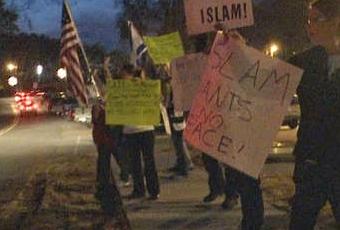 But that was before the christian bigots found out about the muslim request. They blew their tops, and organized demonstrations demanding the muslim request be denied (see picture above). They put pressure on the city council -- and the council crumbled. They voted 4 to 1 to deny the permit needed by the muslims. And the council members who voted no, did so without discussion or a public justification for their vote.