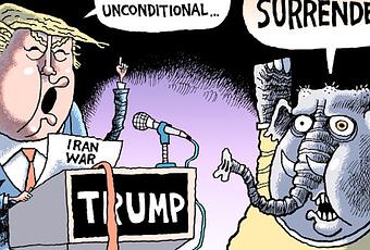 Unconditional Surrender Political Cartoon is by Rob Rogers at Tinyview.com.