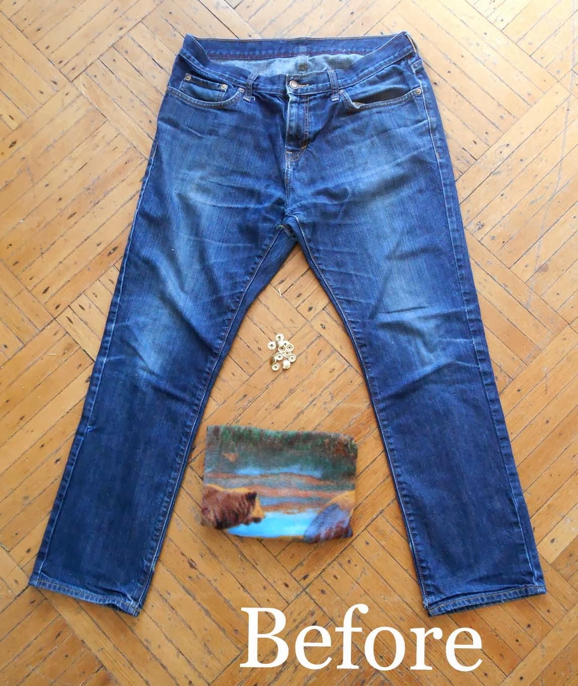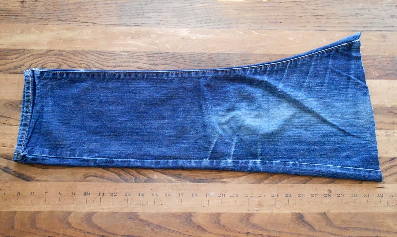 (The extra denim you see on the left and sides is where the snaps will be placed. You'll need at least 1/2" on each side, but you can fold back as much as an 1" if you'd like.)