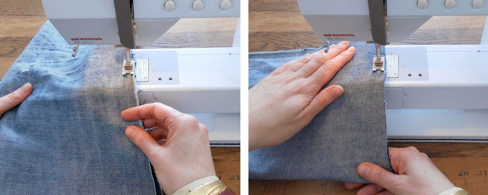 Step 10: Stitch around all sides to secure the denim to the fleece.