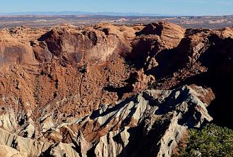 Yet there's still a problem. In addition to shocked quartz, Upheaval Dome has rock layers that clearly were tilted slowly, on the order of millions of years. So another possibility must be considered—perhaps a meteorite impact caused a salt diapir! (Daly & Kattenhorn 2010; Gessaman et al. 2015).But I'm stopping here, having dwelt long enough on how Upheaval Dome might have formed. For me, the mystery doesn't diminish its chaotic and awesome beauty. In fact, it enhances it.