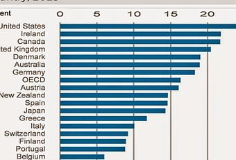 "In a new research note on inequality, Morgan Stanley economist Ellen Zentner included this fascinating chart showing that, among OECD countries, the United States has the highest proportion of low-paying jobs. The 2014 version of the OECD Employment Outlook report cited by Morgan Stanley defines low-paying jobs as those for which earnings are below two-thirds of a country's median income. According to the OECD analysis and the Morgan Stanley report, just over a quarter of jobs in the US fell in this low-paying category. In 2013, the median annual income in the US was $35,080, according to the Bureau of Labor Statistics' Occupational Employment Statistics program. Under the OECD's definition, then, a low-paying job would earn less than about $23,390."