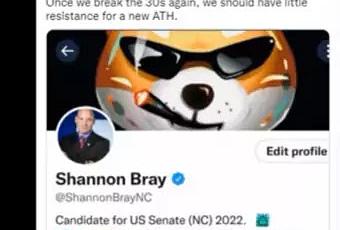 Shannon Bray, a candidate for the U.S senate in North Carolina who, by the way, has been a huge fan of Shiba Inu now tweeted something interesting yesterday. He said I changed my Twitter background. It’s time to kick SHIB back into the ’30s. Come on #SHIBArmy… Make some noise.