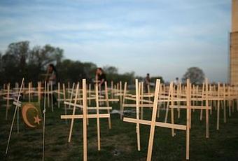Gun control supporters have erected a temporary memorial for those killed by guns since a massacre at a Connecticut primary school in December