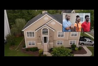 The home at the heart of an FBI raid; (Inset) Curtrina Martin, flanked by her partner, Hilliard Toi Cliatt, and her son, Gabe (Institute for Justice)