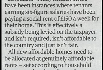 - As MW has successfully demonstrated, there is no taxpayer subsidy in council housing. Rents cover building and maintenance costs.