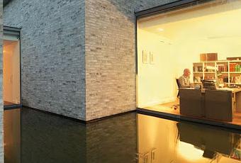 Contemporary features that make a country house style residence look unique but simple. Half of the residence seems like emerging from the water.