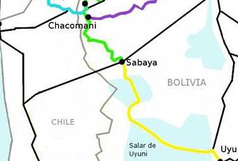 Once we left our comfortable bed in San Pablo, we decided to cut inwards instead of following the Pikes on Bikes route in order to reach a town called San Christobale before heading onwards to Uyuni. Though this route was just as long, it was a lot flatter and in better condition so for the first time since entering Bolivia, we were able to speed along at 20km/h. San Christobale was the first larger town we encountered, meaning there were actually cars and not just llamas on the streets and shops which sold more than just sweets. Kevin and I were also able to buy bananas (our first fruit in over a week) and enjoy a delicious meal of llama steak, veggies, and potatoes in an outdoor market for under three dollars a plate.