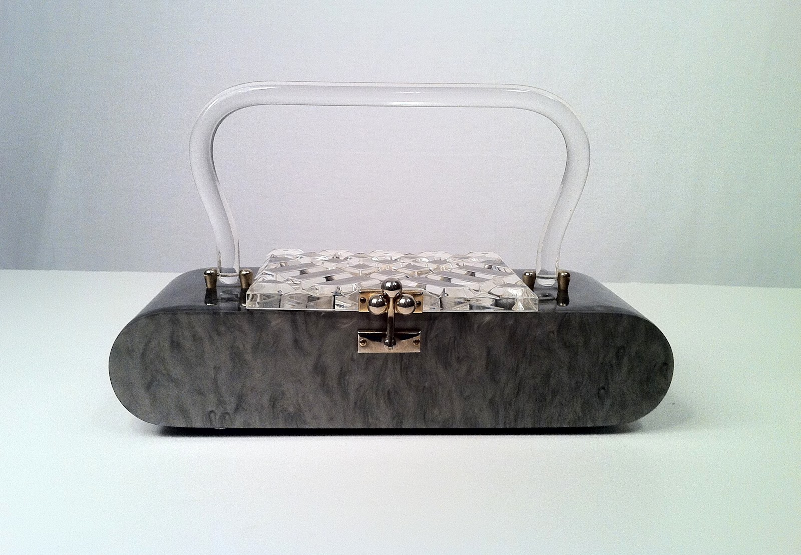 So my latest passion is vintage lucite purses. You have all seen them..those creative and beautiful plastic mid-century purses. Often boxy in shape with unique and very artful designs. Believe it or not, I have never had one in my collection until now.