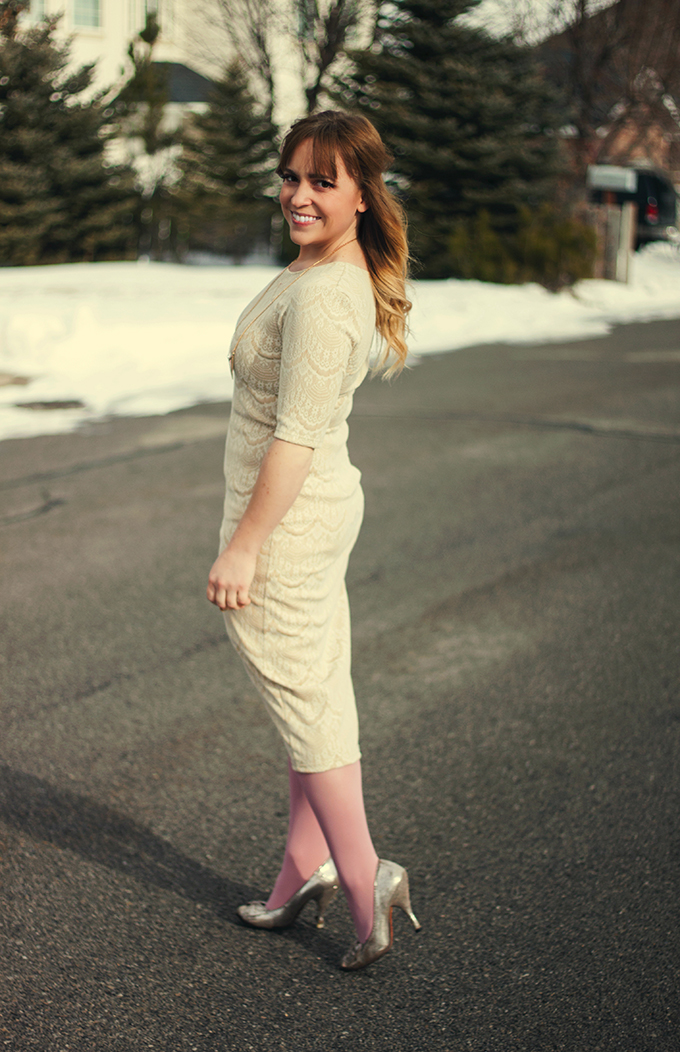 If you know me, you know I'm a sucker for anything vintage, so I love the antique feel of the lace overlay and vintage shape of the dress.