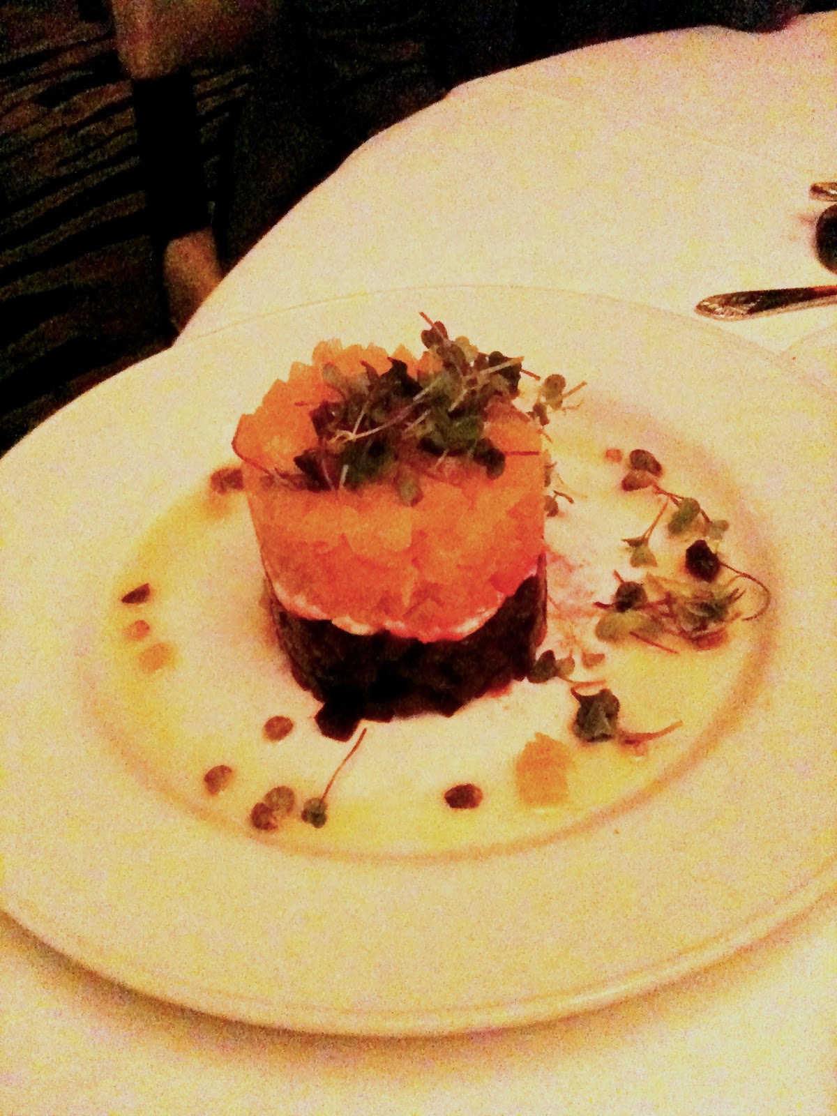How cool is that?! (Barry is my dad, in case you couldn't guess). The staff was extremely friendly and accommodating, and everything about the restaurant was really inviting. The decor was cozy and made you feel very at-home. Holiday lights and decorations adorned the fireplace and bar, as well as the banisters and hostess stand. It was really a beautiful place. I like that it could serve as a romantic spot for a date, but also works nicely as a night out with family like we were having. Not only was the restaurant itself appealing, but the food (taste and presentation) waseven more impressive.
