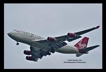 Taken from Coyote Point on a foggy morning, I captured this 747 getting all “dirty” as it finishes its flight from Heathrow. The increased area from the triple slotted flaps are easily seen. The most notable distinguishing features of the Dash 400 are the winglets, and a two-man cockpit, dispensing with the Flight Engineer position.