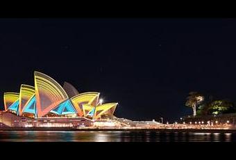 Photo of the Sydney Opera House lit up during Vivid Festival by Jason Meaden shared on flickr with a creative commons license.