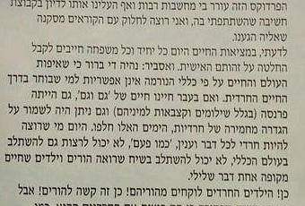 Wow! In order to be haredi today, one must embrace the lifestyle of children forever living off their parents.If you think any differently, you cannot be Haredi. This is definitely a new definition of Haredi.