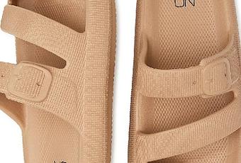 -- This thong slide is your perfect warm-weather choice with a lightweight design and soft molded footbed. Available in Lavender and Tan, sizes 6 to 11.