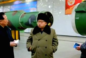 Kim Jong Un is briefed by Hong Su’ng-mu during a meeting with nuclear weapons personnel. The event most likely took place at the T’aeso’ng (Tae-sung) Machine Factory (Photo: KCTV screen grab).