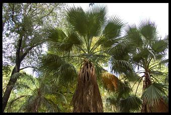 Washingtonia filifera, commonly known as Washington Palm, Desert Fan Palm, California Fan Palm or Petticoat Palm, is native to south west USA. In its native habitat it grows in desert riparian habitats.