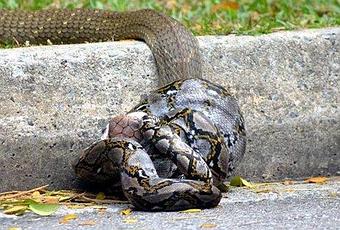 According to Channel News Asia, the Python was making heavy points with its’ powerful gripping moves until the Cobra gave up and ran away.