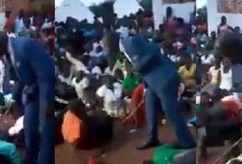A Ugandan Pastor, Paul Muwanguzi was caught on camera flogging his church members who missed his previous Sunday service.
