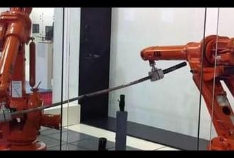 Fully equipped with super sharp Japanese swords, these two ABB robots battle each other in a terrifyingly perfect match that may probably last forever. Puny humans will never stand a chance against these sharp robots.