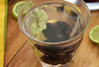 Muddle the berries, lime and mint a bit in a pitcher. Add ice and water. Ridiculously easy.