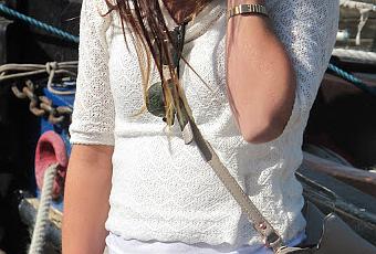 We then hopped back in the car, and with the wind through our hair we drove right out into the countryside. To then climb up a slight hill and see the sea with little yachts bobbing up and down in the distance. As it was a clear day, you could see for miles, and the view was amazing. The breeze coming off the water was ice cold, and I certainly felt it in shorts! I also felt the nautical theme with the navy and cream appropriate for being by the sea.Amie♥