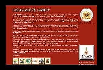“We are also aware of several social media handles masquerading as official social media handles for Amotekun. We do not endorse or assume responsibility or any engagements with these bogus sites and will not be a party to or in any way be responsible for any claims of fraud.”